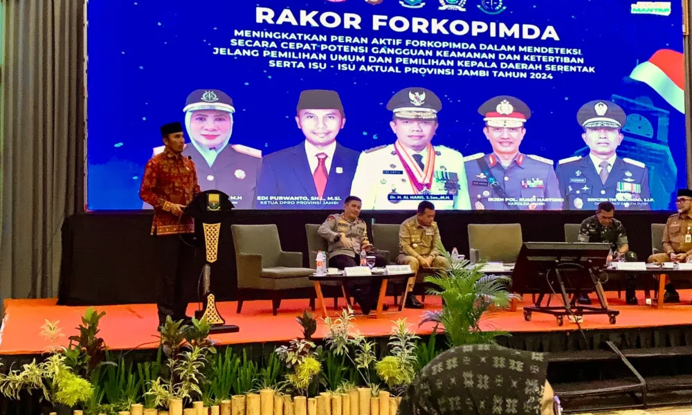 Jambi – Gubernur Jambi Al Haris memimpin rapat Forum Koordinasi Pimpinan Daerah (Forkopimda) menyambut Pemilu serentak 2024, Senin, 12 Februari 2024. Menjelang pemilu, diadakan rapat pada...