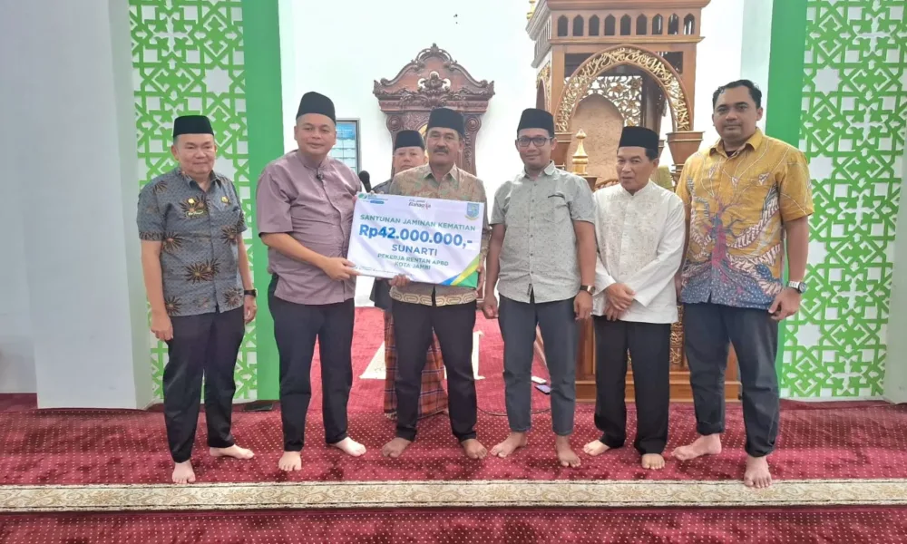 Jambi – Ketua DPRD Kota Jambi, Kemas Faried Alfarelly, menunaikan janjinya memberikan perlindungan jaminan sosial kepada Babinsa dan Bhabinkamtibmas. Penyerahan kartu kepesertaan BPJS Ketenagakerjaan bagi 12...