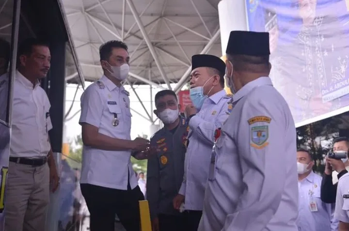 DETAIL.ID, Muarojambi – Penjabat bupati muarojambi Bachyuni Deliansyah, SH. MH. menghadiri peresmian rute baru bus wisata Trans Siginjai tujuan Bandara Sultan Thaha Syaifuddin Jambi ke Candi...