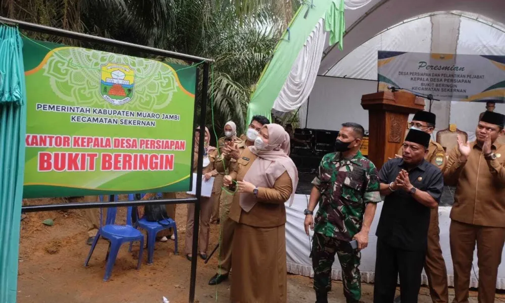 DETAIL.ID, Muarojambi – Bupati Hj. Masnah Busro, SE, M.Tr.IP meresmikan Desa Persiapan dan Melantik Pejabat Kepala Desa Persiapan Bukit Beringin, Kecamatan Sekernan, acara dilaksanakan pada Senin...