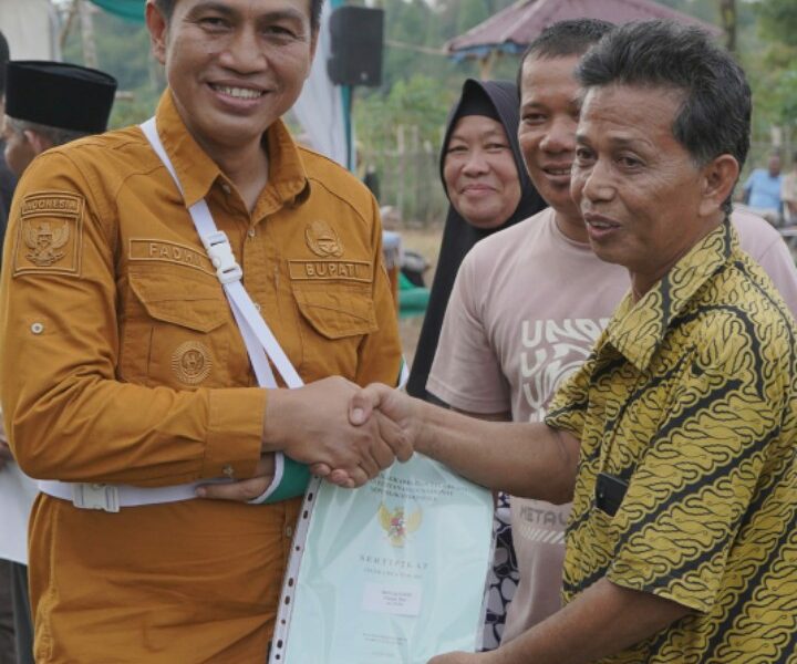 Batanghari – Bupati Batanghari, Muhammad Fadhil Arief meresmikan jalan serta membagikan Sertifikat Program Pendaftaran Tanah Sistematis Lengkap (PTSL) tahun 2022 dan 2023 kepada masyarakat di Desa...