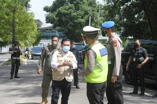 DETAIL.ID, Kota Jambi – Hari kedua pengetatan Pemberlakuan Pembatasan Kegiatan Masyarakat (PPKM) Level 4 Kota Jambi, Gubernur Jambi, Al Haris bersama Wakpolda Jambi, Brigjen Pol Yudawan...