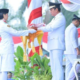 Tanjungjabung Timur – Ketua Dewan Perwakilan Rakyat Daerah (DPRD) Kabupaten Tanjungjabung Timur, Mahrup, SE membacakan teks proklamasi saat upacara kenaikan bendera dalam upacara peringatan HUT Ke-78...