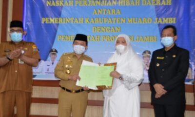 DETAIL.ID, Muarojambi – Bupati Muaro Jambi Hj. Masnah Busro, SE, M.Tr.IP, Senin 21 Februari 2022, melakukan penandatanganan Naskah Perjanjian Hibah Daerah (NPHD) antara Pemerintah Kabupaten Muarojambi...