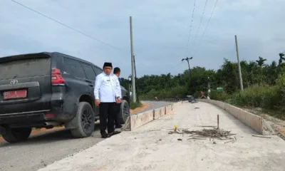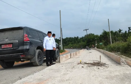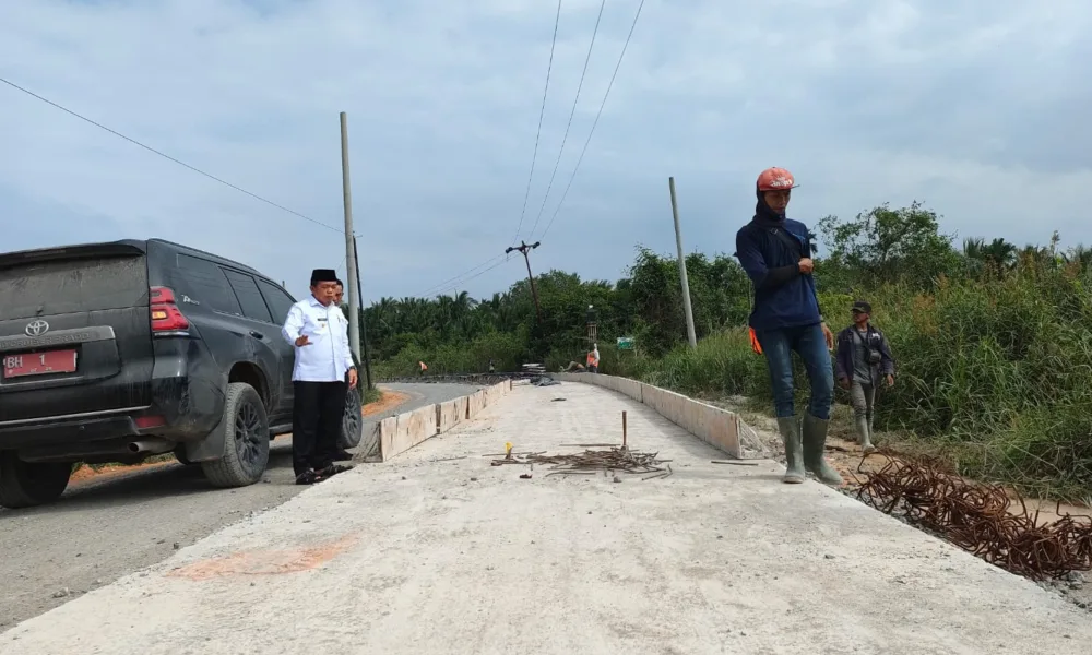 Jambi – Gubernur Jambi Al Haris meninjau pengerjaan jalan Sungai Saren–Senyerang, di Kabupaten Tanjungjabung Barat (Tanjabbar), Rabu siang, 15 Maret 2023. Saat meninjau jalan yang tengah...