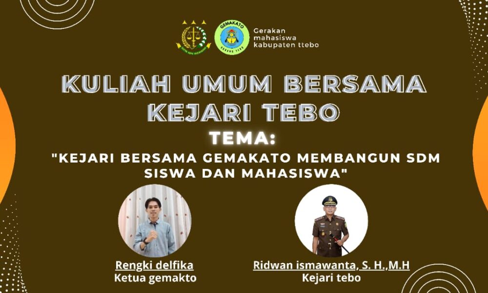 DETAIL.ID, Tebo – Dalam upaya peningkatan sumber daya siswa dan mahasiswa Kabupaten Tebo, Gerakan Mahasiswa Kabupaten Tebo (Gemakato) Cabang Tebo akan menyelenggarakan Kuliah umum Bersama Kejari...