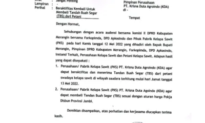 detail.id/, Merangin – PT Krisna Duta Agroindo (KDA) di Kabupaten Merangin, Jambi tampaknya tidak benar-benar berkomitmen penuh dalam melaksanakan kesepakatan yang dihasilkan saat audiensi bersama Komisi...