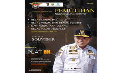 Jambi – Dalam rangka HUT ke-67 Provinsi Jambi, Pemprov Jambi kembali melakukan pemutihan pajak kendaraan bermotor (PKB). Kepala BPK-PD Provinsi Jambi, Agus Pirngadi melalui Kabid Pengelolaan Pendapatan...