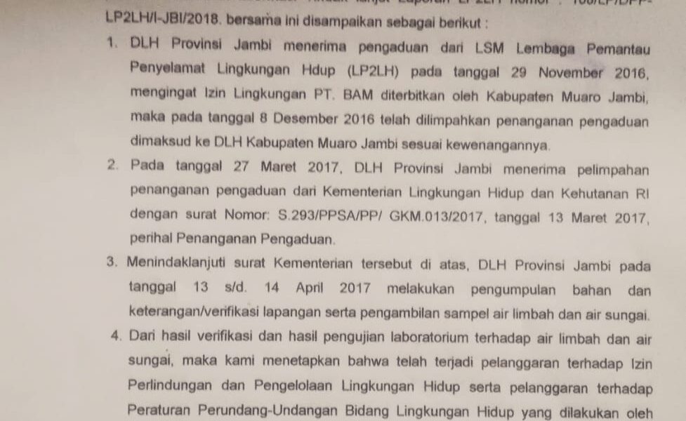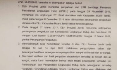 Jambi – PT Biccon Agro Makmur (BAM) mangkir terhadap panggilan Dinas Lingkungan Hidup (DLH) Provinsi Jambi terkait dugaan pencemaran lingkungan akibat aktivitas pabriknya. PT BAM adalah...