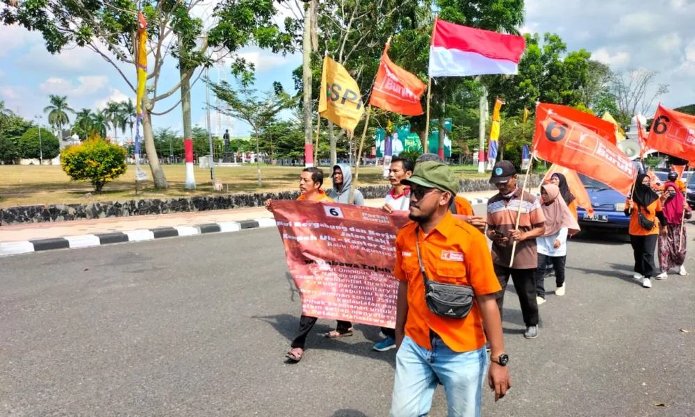 Jambi – Buruh, petani, pemuda, mahasiswa, miskin kota dan pekerja lainnya yang tergabung dalam Partai Buruh melakukan aksi berjalan kaki atau long march dari Kumpeh Ulu,...