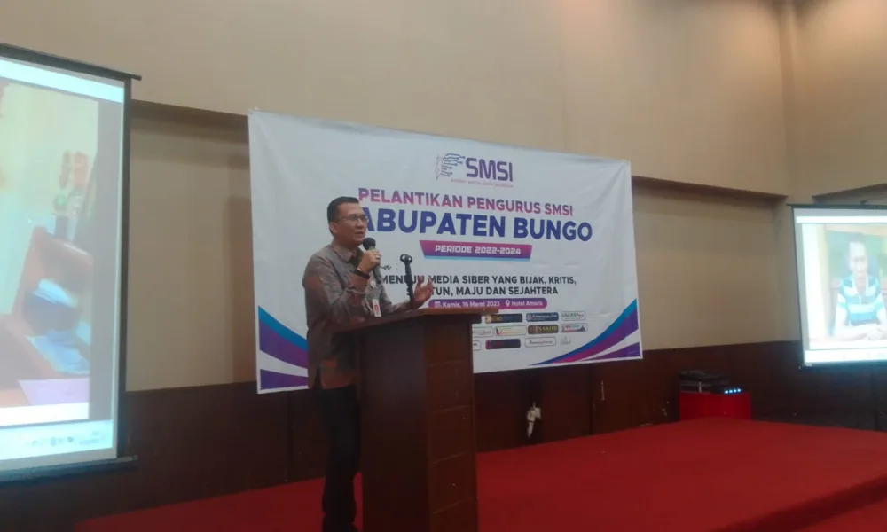 Bungo – Kepala Dinas Komunikasi dan Informasi (Kominfo) Provinsi Jambi Ariansyah menghadiri pelantikan pengurus Serikat Media Siber Indonesia (SMSI) yang diselenggarakan di Hotel Amaris Kabupaten Bungo,...