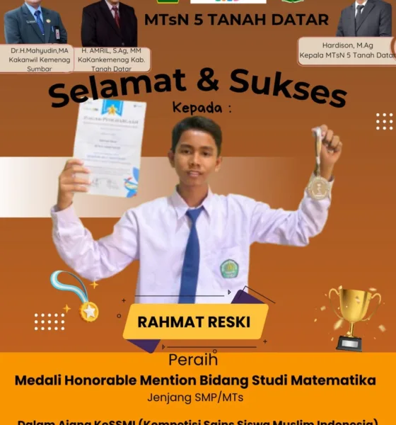 DETAIL.ID, Tanah Datar – Siswa Madrasah Tsanawiyah Negeri (MTsN 5) Tanah Datar kembali mengharumkan nama madrasah di kancah Nasional. Dalam...