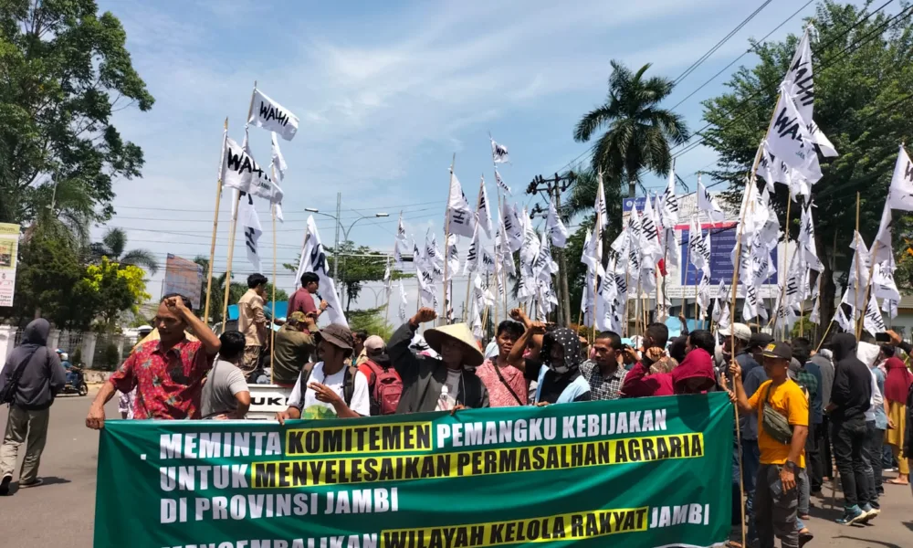 detail.id/, Jambi – Wahana Lingkungan Hidup (Walhi) Jambi bersama masyarakat desa menggelar aksi di Lapangan Kantor Gubernur Jambi, Senin, 26 September 2022. Teriakan usut tuntas mafia...