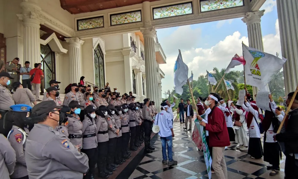 detail.id/, Jambi – Puluhan massa Kesatuan Aksi Mahasiswa Muslim Indonesia (KAMMI) melakukan unjuk rasa di depan kantor Gubernur Jambi, Senin 4 Juli 2022. Massa KAMMI dalam...