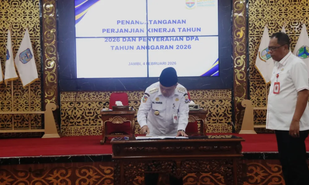 Jambi – Gubernur Jambi, Al Haris menegaskan pentingnya komitmen kerja yang terukur, fokus, dan dapat dipertanggungjawabkan dalam penyelenggaraan pemerintahan. Penegasan tersebut disampaikan saat Penandatanganan Perjanjian Kinerja...