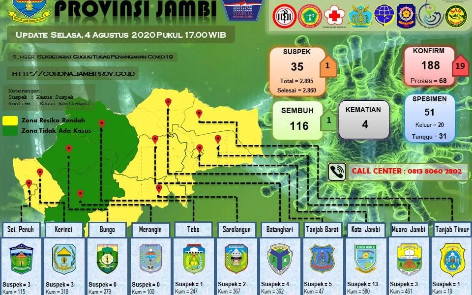 detail.id/, Jambi – Tim Gugus Tugas Penanganan COVID-19 Provinsi Jambi kembali mengumumkan bertambahnya kasus baru COVID-19 di Provinsi Jambi. Jumlah kasus yang terkonfirmasi COVID-19 pada Selasa,...