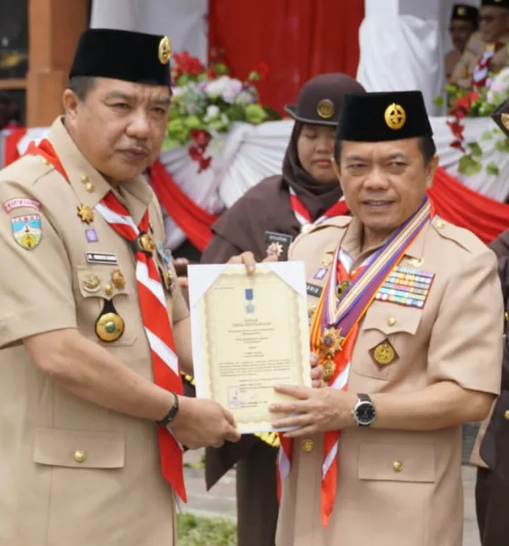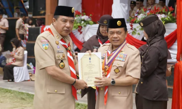 Merangin – Penjabat (Pj) Bupati Merangin, H Mukti selaku Ketua Mabicab Gerakan Pramuka Kabupaten Merangin terima penghargaan Lencana Pancawarsa III...