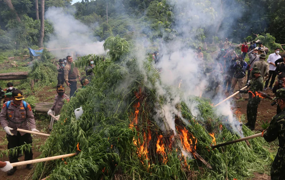 SEBANYAK 15 ton tanaman ganja dimusnahkan. Kaki Gunung Seulawah, lokasi penanaman ganja seluas 2 hektare tersebut menjadi saksi pemusnahan massal oleh BNN. Tapi sayangnya, cara pemusnahannya...