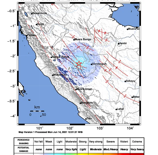 detail.id/, Merangin – Gempa bumi berkekuatan Magnitudo 4,3 mengguncang Kabupaten Merangin, Provinsi Jambi, Senin 14 Juni 2021, pukul 18.46 WIB. BMKG mengonfirmasi, gempa tersebut tidak berpotensi...