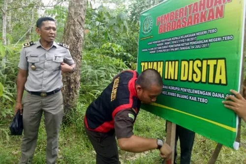 DETAIL.ID, Tebo – Sebidang tanah seluas 1,8 hektar terpaksa disita tim penyidik Kejaksaan Negeri (Kejari) Tebo, Jambi, Rabu (6/3/2019). Tanah itu adalah milik tersangka korupsi dana...