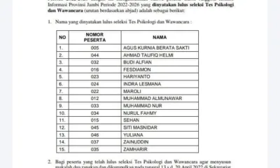 detail.id/, Jambi – Sejumlah 15 orang peserta calon Komisi Informasi (KI) Provinsi Jambi dinyatakan lolos pada tes psikologi dan wawancara oleh tim seleksi. Hal tersebut tercantum...