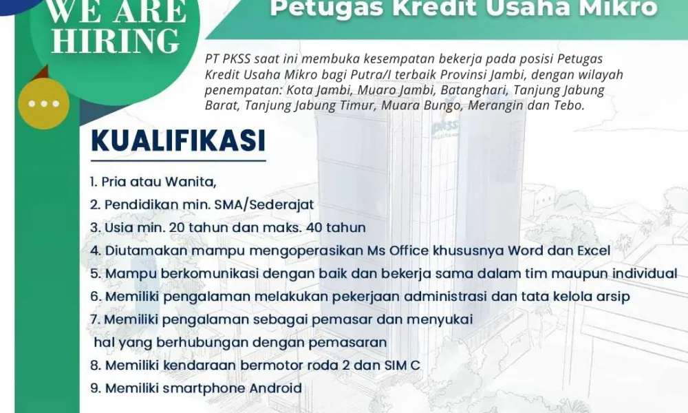 detail.id/, Jambi – PT Prima Karya Sarana Sejahtera (BRI Group) buka lowongan terbaru di bulan November 2022. PT PKSS berdiri pada tahun 1999 dan memiliki komitmen...