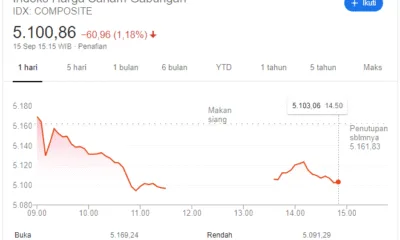 detail.id/, Jakarta – Indeks Harga Saham Gabungan (IHSG) berada di level 5.100 pada penutupan perdagangan Selasa 15 september 2020 sore. Posisi itu melemah 1,18 persen dibanding...