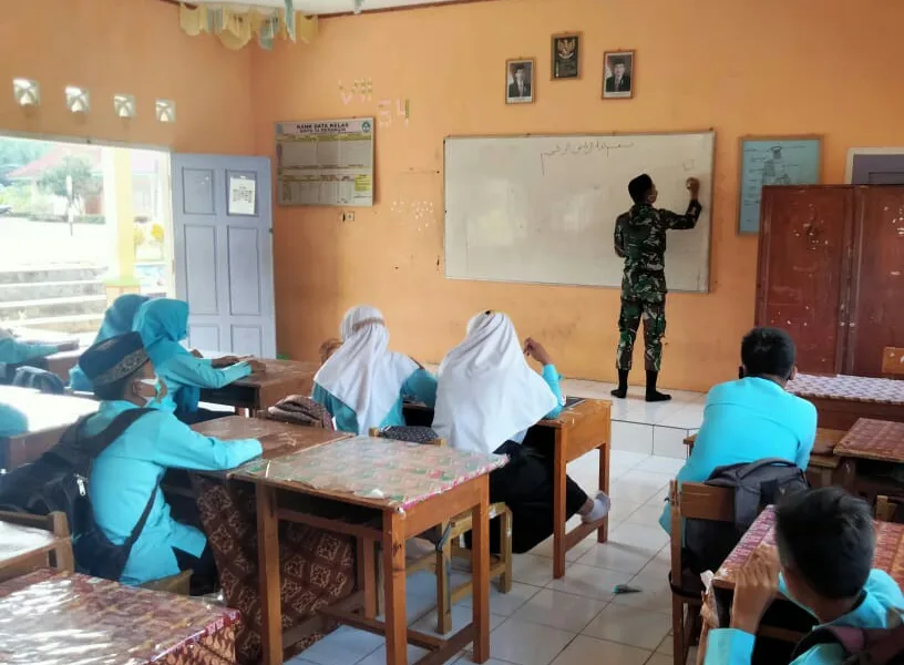 Berbekal Ilmu Agama, Satgas TMMD 111 Ini Ajari Pelajar SMP Bahasa Arab