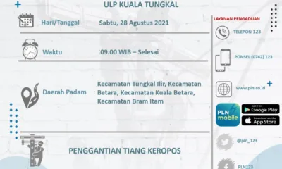 detail.id/, Kuala Tungkal – PLN ULP Kuala Tungkal kembali menginformasikan akan melakukan pemadaman di 4 kecamatan pada Sabtu 28 Agustus 2021. Empat kecamatan tersebut seperti Betara,...