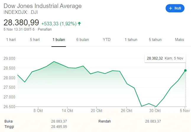 detail.id/, Jakarta – Bursa saham Amerika Serikat (AS) dibuka menguat pada perdagangan Kamis 4 November 2020, melanjutkan reli Wall Street yang dicetak kemarin meski hasil pemungutan...